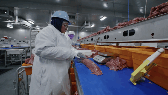 I am the Lead Filet cutter. I manage my line at the filet table, from the people, to the quality of the cuts, to the time spent. I first started on the boneless table and moved up as Lead about 3 years ago.